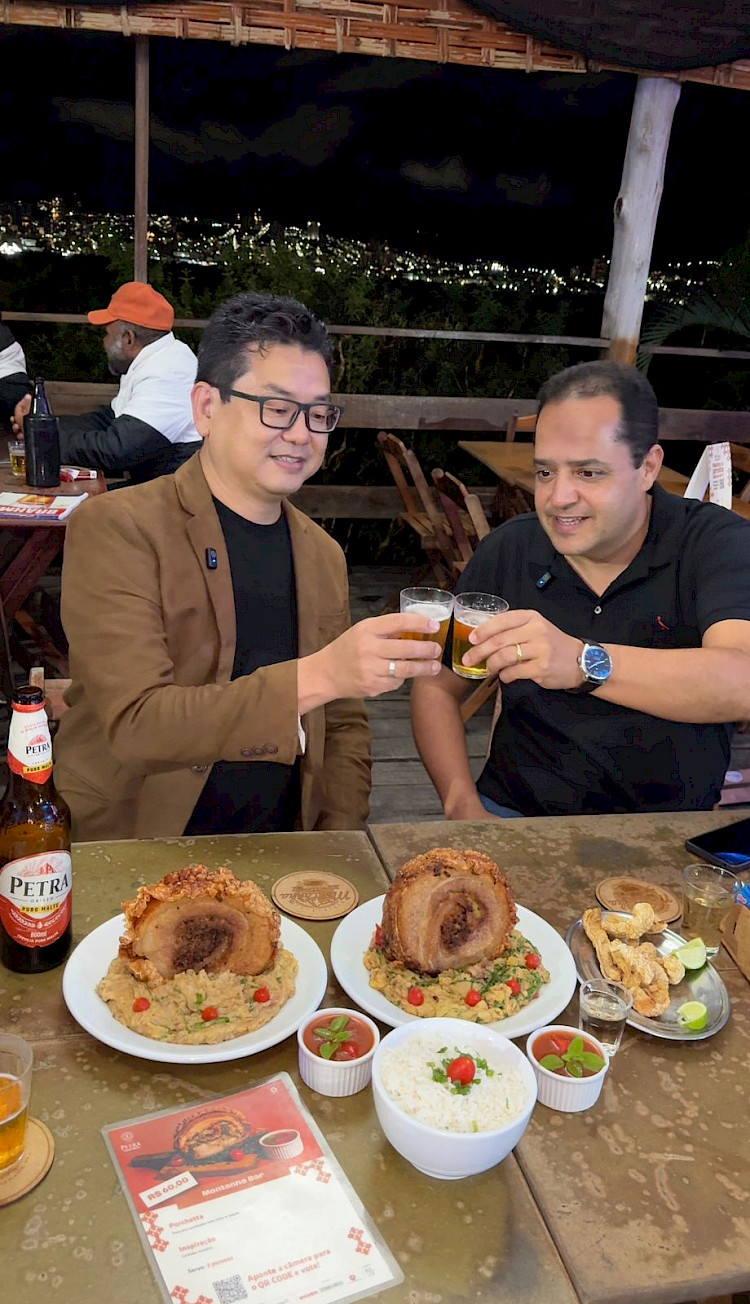 Durante a visita ao Montanha Bar, os representantes das entidades foram recebidos com hospitalidade pela equipe da casa e puderam experimentar o prato participante: Porchetta - panceta recheada acompanhada de tutu e couve. Uma criação autoral que traduz Minas Gerais em sabor, técnica e afeto, alinhada ao espírito artesanal proposto pelo festival.
